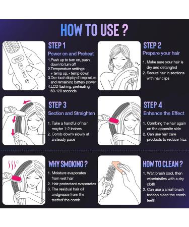Straightening comb offers an adjustable temperature range from 280°F to 400°F, enabling it to deal with various degrees of frizzy hair effortlessly. Just adjust the temperature as needed and enjoy smooth and sleek hairstyles. It's a fantastic option for hair styling!
